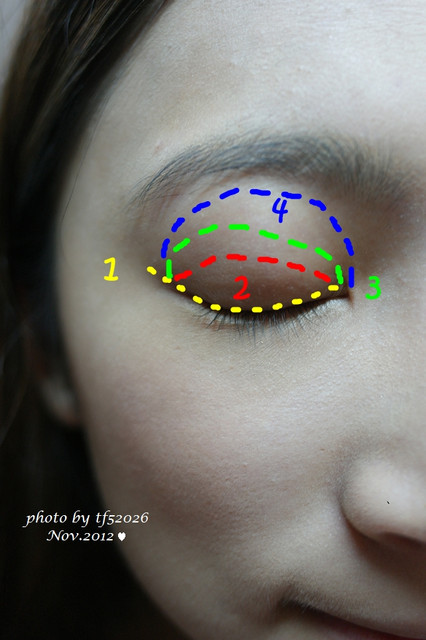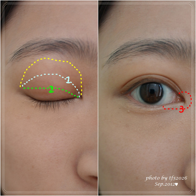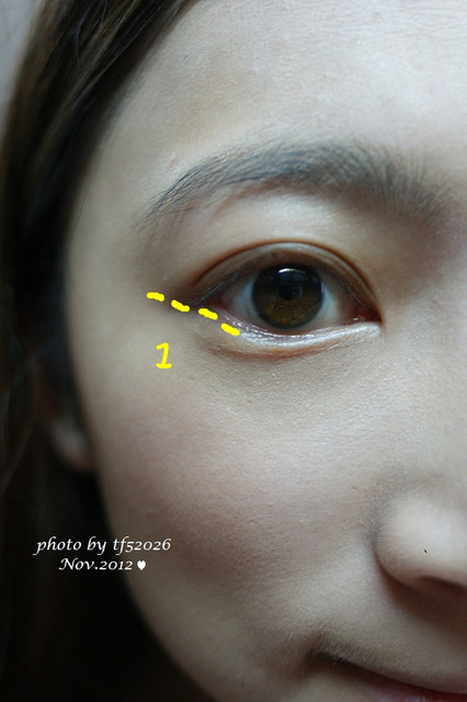 然後再用2號深咖啡色塗滿雙眼皮摺處~