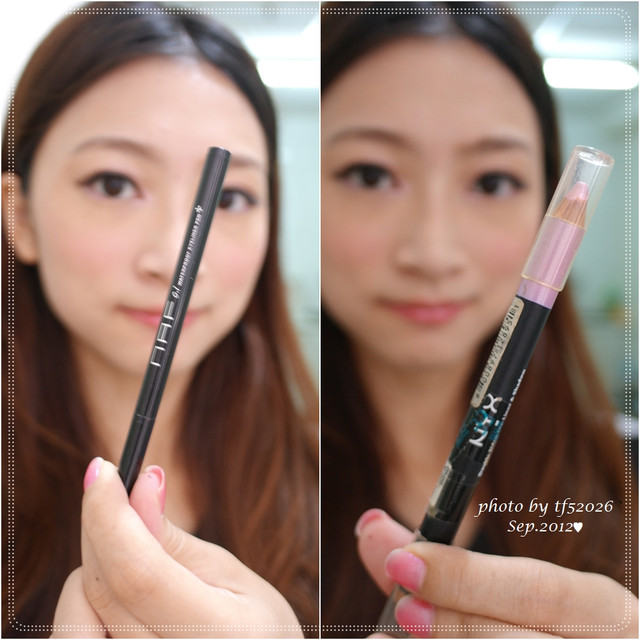接著我們拿出眼線液跟粉紅色眼線筆~!